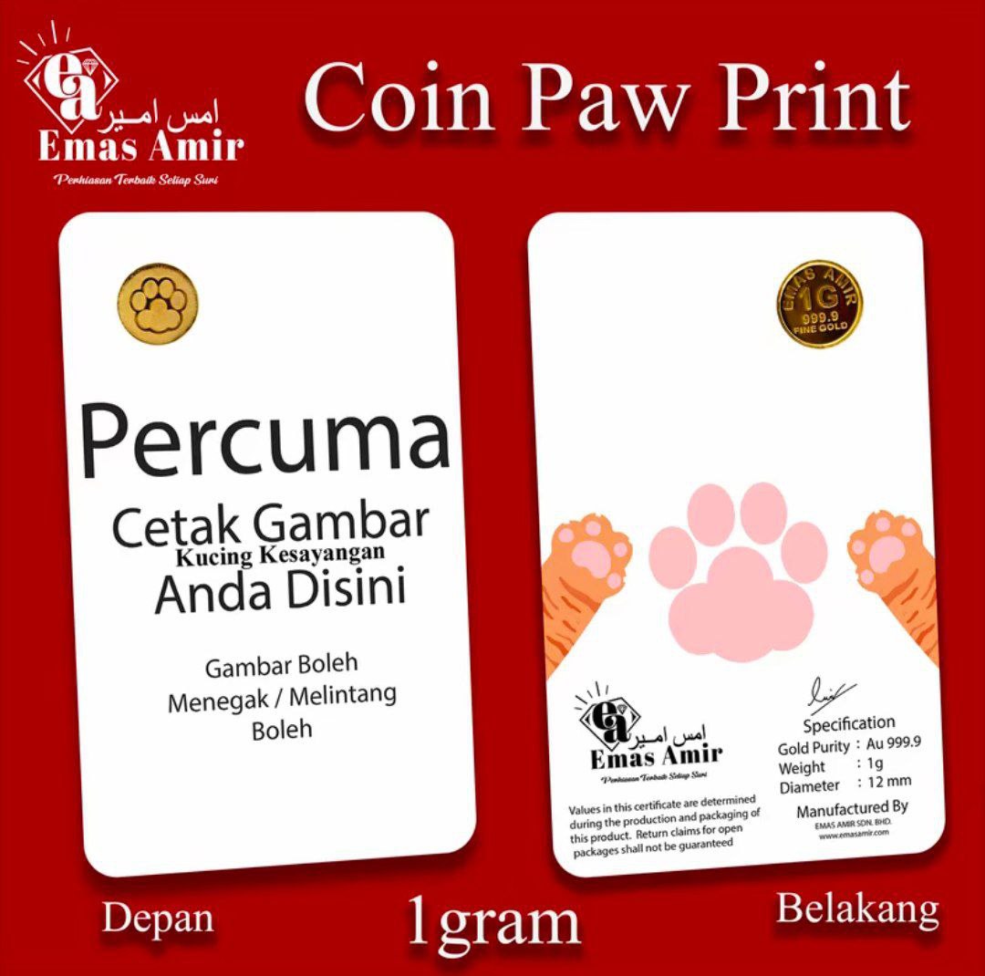Emas Amir Syiling Emas/Gold Coin 1 Gram 999.9 Custom - Paw Print